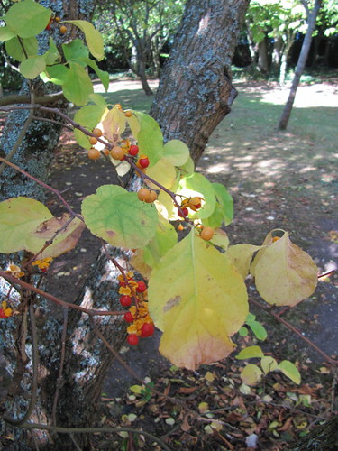Check your yard for sweet autumn clematis (Clematis terniflora). This vine, originally from China and Japan, has small white blooms September through October, but it climbs woody plants or spreads on the ground, smothering native plants. Producing profuse seeds, it escapes gardens and has invaded forests, roadsides, streambanks, and vacant lots. Identification and control methods can be found here.