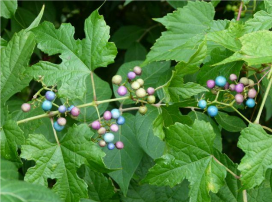 (Ampelopsis brevipedunculata). The widely variable berry colors make it a