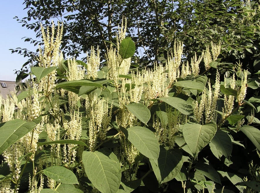 Japanese Knotweed was brought to the US for ornamental and erosion control purposes in the 1800s. It is a perennial herbaceous plant which likes to grow in shady moist to wet areas such as banks or creeks and ponds.